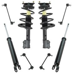 So, we're going to be doing the rear shocks, right? It's important to remember that there's a big difference between rear shocks and front struts. Struts, generally speaking, have a big coil going around them, okay? A big spring. It looks something like this. If you're working on something that has a big spring around it that looks like this, you would not want to touch this right here. This is the nut in the center, okay? Where this does not have a big spring, that means that isn't compressed and there's no force that's going to want to drive it up when I take that nut off.